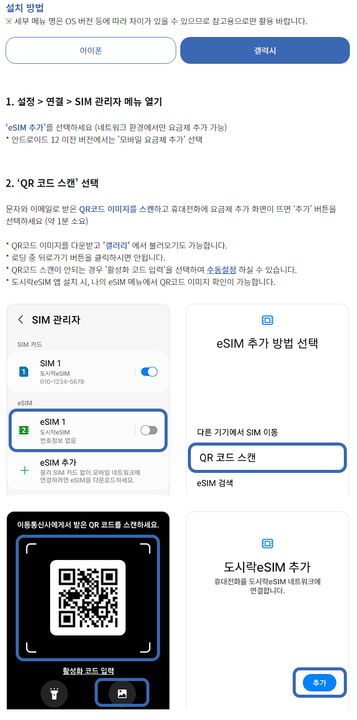 - QR코드 스캔 또는 활성화 코드 입력을 통해 이심을 다운로드합니다.